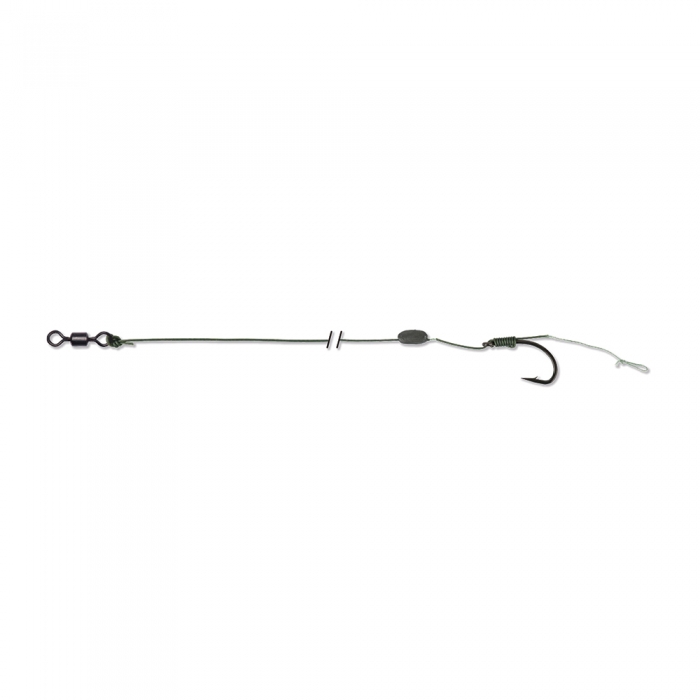 Данный поводок разработан совместно с Паскалем Коваликом после нескольких лет подводных наблюдений за работой оснастки и поклевок рыб. Поводок изготовлен из быстротонущего поводочного материала в жесткой оплетке Combi-Stiff Hooklink, что делает его очень устойчивым к спутыванию. На небольшом участке под крючком покрытие снято, чтобы обеспечить свободное движение приманки с крючком под любым углом, под которым рыба берет приманку.