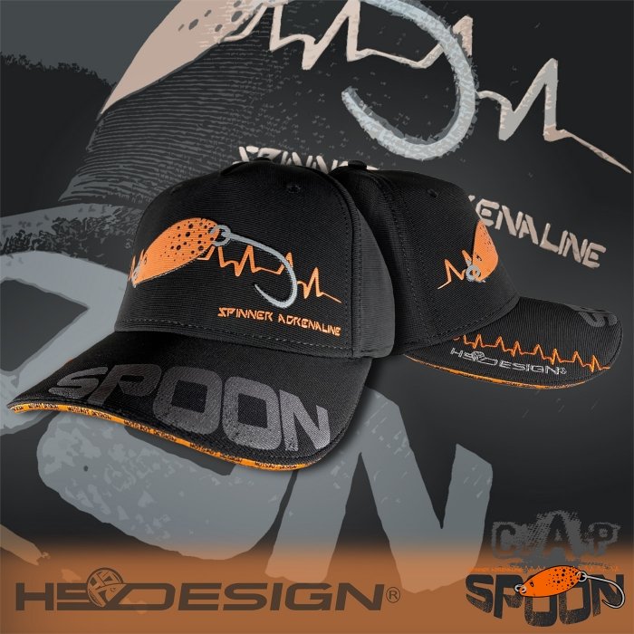 Кепка Hotspot Design Spoon Cap. Cap Spoon из 90% полиэстера и 10% хлопка, черного цвета, унисекс, один размер подходит всем. Ткань Ottoman имеет легкий кордовый эффект, это дышащая и растягивающаяся ткань, которая предотвращает изменение размера, чтобы исключить деформацию кепки, она гарантирует идеальную посадку каждый раз. Передняя часть кепки: Ложка-приманка с хорошо заметным тисненым принтом с вышитыми линиями «адреналин» с двух сторон. Козырек: напечатанный текст Spoon и вышитая линия «адреналин» и логотип Hotspot Design, сэндвич контрастного цвета с логотипом Hotspot Design, напечатанным по всей длине. Задняя часть: из собственной ткани с металлической пряжкой для регулировки окружности кепки. На ленте вышит логотип Hotspot Design. Атласная пряжка с логотипом Hotspot Design.