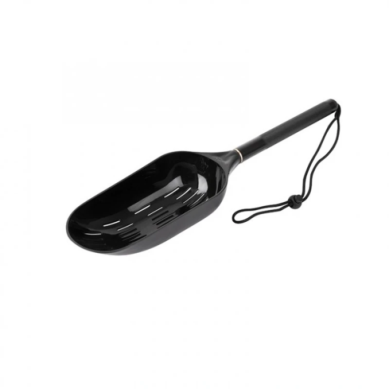 - Определите тип прикормки: для сыпучих particle — широкий совок, как Fox Particle Baiting Spoon Black.