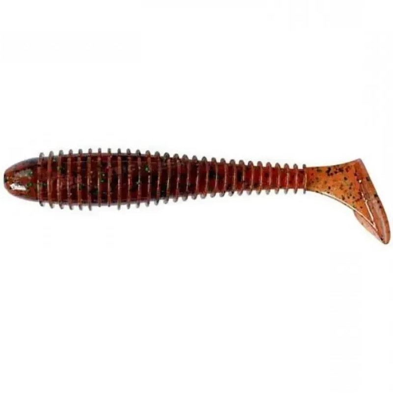 Силикон Fat Swing Impact 4.3 обладает достаточно упитанным ребристым телом, создающим сильные колебания в воде. В качестве оснащения виброхвост довольно универсален, так как может монтироваться на джиг-головке, шарнирном соединении, оснастке дроп-шот и других вариациях. При ловле в мелководных заросших участках, приманка может вообще использоваться без огрузки. При необходимости ее можно догрузить в имеющиеся специальные отверстия в брюшной части. Это добавит лишние метры к забросу силикона, а также сбалансирует его игру.