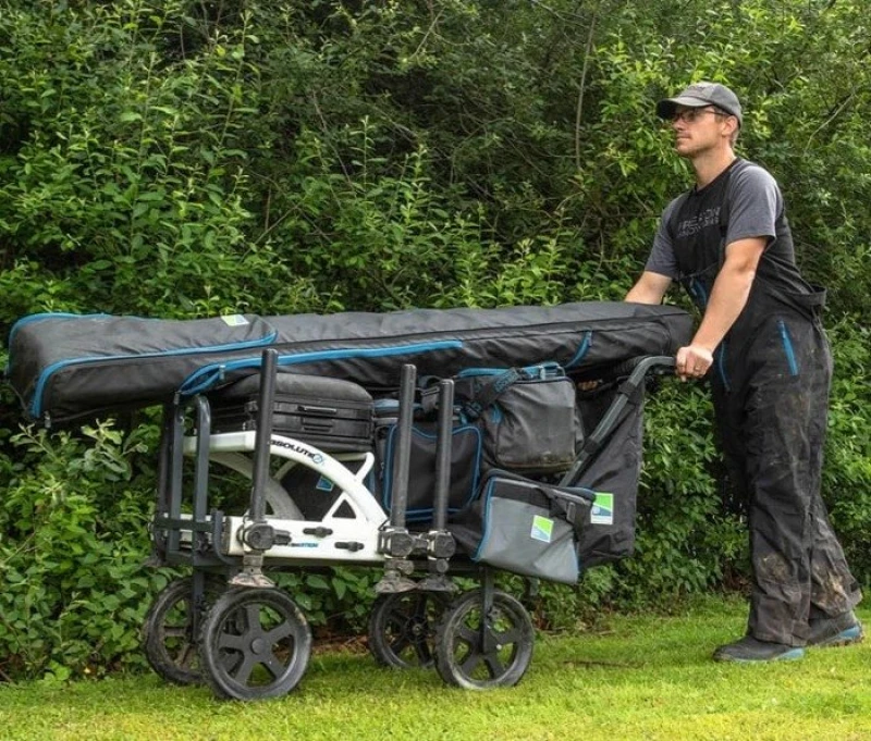 Тележка Preston 4 Wheel Shuttle. Четырехколесный шаттл — идеальный способ транспортировки вашего снаряжения. Разработан для размещения не только вашего бокса, но и всего вашего снаряжения, включая сумку, которую можно прикрепить к задней опорной планке. Проблема проколов устраняется сплошными шинами, которые можно отрегулировать для увеличения дорожного просвета. Благодаря четырем колесам, поддерживающим весь его вес, его просто нужно подтолкнуть к колышку, не нужно ничего поднимать! Весь шаттл можно разобрать для упаковки в машину или хранения дома. Поставляется с грузовым отсеком, который идеально подходит для перевозки одежды или приманки. Функции Легко приведите всю вашу установку в порядок Четыре колеса поддерживают груз, поэтому нет необходимости его поднимать. Цельные колеса означают отсутствие проколов Регулируемые шины для большего дорожного просвета Легко разбирается для хранения или транспортировки. Встроенный грузовой отсек для наживки, одежды и т. д.