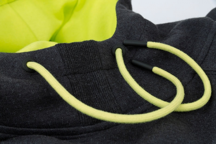 Мінімалістичний дизайн Підкладка капюшона та шнури кислотного кольору Передня кишеня типу кенгуру Прогумовані контрастні логотипи Структурований капюшон з високим коміром Меланжевий матеріал, що пройшов попередню усадку 65% поліестер, 35% бавовна Доступні розміри S, XL, M