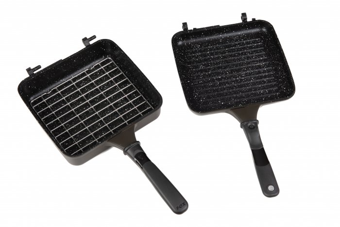 Тостер Fox Cookware Multi-Pan Deep 19,8x18,5x6,9cm. Мультикаструлі Fox Cookware – литі алюмінієві каструлі з високотемпературною антипригарною мармуровою поверхнею для приготування. Відкидні та знімні, тому кожну каструлю можна використовувати окремо. Поставляється з решіткою з нержавіючої сталі, щоб запобігти прямому контакту пирогів, тістечок, піци тощо з поверхнею каструлі, зменшуючи пригоряння. Поставляється в захисному неопреновому чохлі та/або використовується лише на газових плитах. Особливості Мультипательні каструлі кольору хакі з високотемпературною антипригарною мармуровою поверхнею для приготування їжі Конструкція з литого під тиском алюмінію Включає решітку з нержавіючої сталі, яка запобігає прямому контакту пирогів, тістечок, піци тощо з поверхнею сковороди, зменшуючи пригорання Відкидна та знімна, тому кожну сковорідку можна використовувати окремо Знімні ручки з сенсорними кнопками для компактного зберігання Тільки для використання на газових плитах Поставляється в захисному неопреновому чохлі Специфікації Глибокий посуд для куховарки Одна гладка половина глибиною 47 мм Одна сковорода-гриль глибиною 22,5 мм