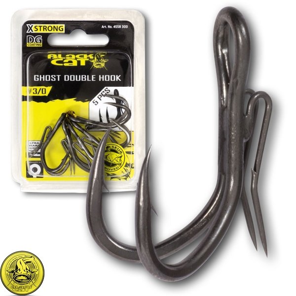 Крючки двойные Black Cat Ghost Double Hook DG coating. Ghost Double Hook — одна из самых инновационных серий крючков, когда-либо доступных для ловли сома. Два острия на стержне крючка помещаются под кожу наживки. Это делает крючок Ghost Double Hook очень агрессивным по отношению к наживке, а также отлично ее удерживает. Независимо от того, размещаете ли вы их на боковой стороне приманки размера XXL или на спине мертвой наживки, вы можете рассчитывать на двойной крючок Ghost. Любого крупного сома можно проткнуть без проблем! «DG Coating» — инновационное покрытие с гораздо более гладкой поверхностью, чем у Teflon©, и в 4 раза большей коррозионной стойкостью по сравнению с обычными покрытиями.