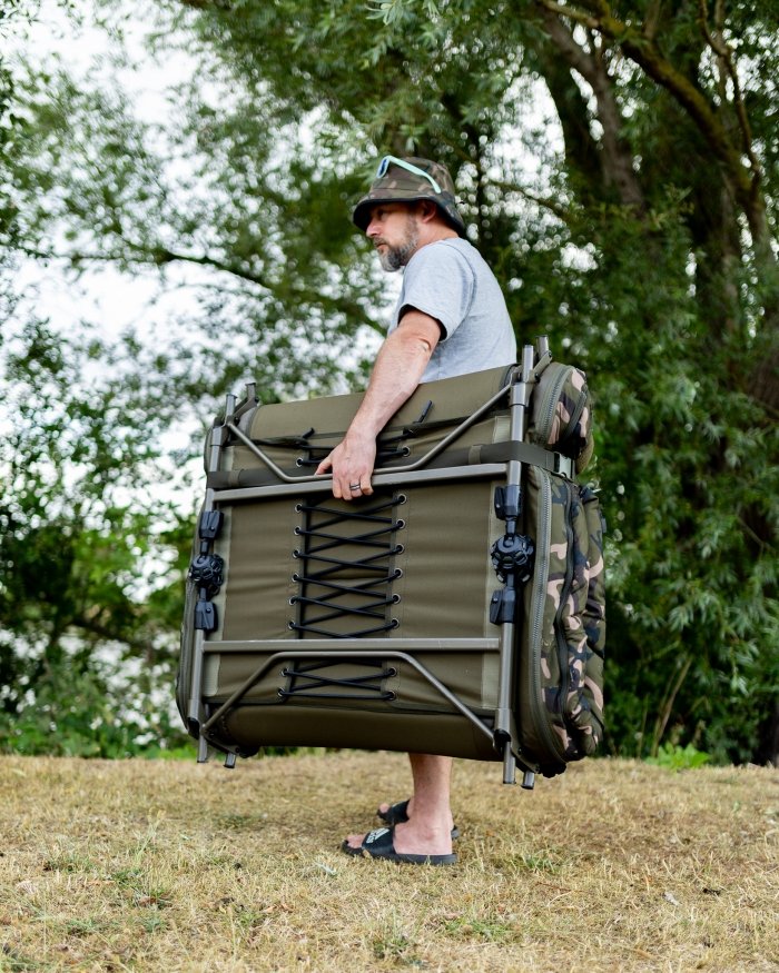 Ліжко система Fox Camolite Compact Sleep System 214x86x34-45cm. Система Fox Camolite Compact Sleep System ідеально підходить для дитячих ліжок-барбекю та невеликих будиночків. Має повну систему підтримки попереку, що забезпечує жорсткий матрац без провисання, та плоску конструкцію ліжка з каркасом без ексцентрика для максимального комфорту та корисної ширини. З вбудованим знімним 4-сезонним камуфляжним спальним мішком з повністю флісовою підкладкою та термоізоляцією для збереження тепла. Має шість регульованих ніжок з великими поворотними брудозахисними ніжками для максимальної підтримки та стійкості. З новим пружинним механізмом для легкого регулювання висоти одним дотиком. Особливості Вбудований, знімний спальний мішок камуфляжного кольору на 4 сезони з повністю флісовою підкладкою та термоперегородкою для збереження тепла Конструкція ліжка з плоским профілем та рамою без ексцентриків для максимального комфорту та корисної ширини Повна система підтримки попереку забезпечує жорсткий матрац без провисання М'який матрац з флісовою підкладкою та додатковою м'якою подушкою з принтом Fox Camo Шість регульованих ніжок з великими поворотними грязьовими ніжками для максимальної підтримки та стійкості Новий пружинний механізм ніжок для легкого регулювання висоти одним дотиком Подвійні петлі та бічні натяжні ремені для компактного складеного положення Особливості спального мішка включають міцні 10-міліметрові блискавки та блискавку по всьому периметру для легкого зняття. Специфікації Розміри 214 см x 86 см Висота: 36-45 см Розміри у складеному вигляді: 79 см x 85 см x 34 см Вага 14,8 кг