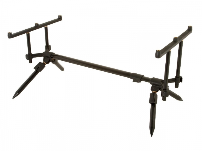 Один из наиболее популярных род-подов в Европе Невесомая конструкция из алюминиевых труб идеальна как для мобильного, так и для статичного рыболова Полностью раздвижная основная центральная штанга Все четыре ножки раздвигаются, что делает род-под более универсальным и стабильным В комплект входят перекладины на 2 и на 3 удилища Три позиции ног – впереди, по центру и сзади В комплект входит специальный чехол для хранения