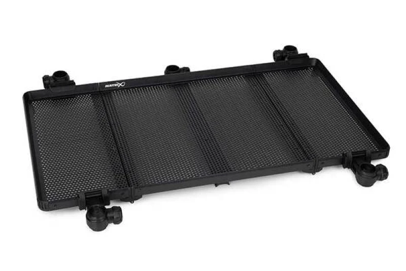 Стіл- обвіс Matrix Folding Side Tray XL 90,5x50cm. Складаний бічний піднос Matrix X-Large постачається з чотирма рухомими затискачами для ніжок, які можна переміщувати, щоб вони відповідали різним коробкам для сидіння. З фіксуючими затискачами, які надійно утримують складені частини разом під час транспортування. Сумісний з круглими ніжками 25 мм, 30 мм та 36 мм. Підходить для всіх аксесуарів бічних підносів із затискачами Matrix. Особливості Поставляється з чотирма рухомими затискачами для ніг, які можна переміщувати для встановлення на різні сидіння Для використання опорних ніжок можна додати затискачі до зовнішньої сторони (рекомендовано) Фіксуючі затискачі надійно утримують складені деталі під час транспортування Підходить для всіх наших аксесуарів з пристібками для бокового лотка Перфорована поверхня запобігає накопиченню води та приманки Сумісний з круглими ніжками 25 мм, 30 мм та 36 мм Специфікації Розміри у відкритому вигляді 90,5 x 50 см Розміри у складеному вигляді 47 x 50 см Вага 3,7 кг