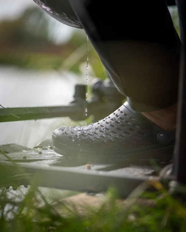 Летняя обувь для рыбалки типа Matrix Clogs Black улучшает комфорт при забросах за счет гибкой подошвы, которая амортизирует толчки. Открытый дизайн предотвращает скопление влаги, снижая вес на ногах во время повторяющихся движений. Для теста на рост 175 см размер 44 дает стабильность, не сдвигаясь при рывках удилища. Это особенно заметно на неровных берегах Днепра, где обычная обувь скользит. В итоге такая обувь продлевает сессии, минимизируя усталость и повышая точность бросков в летний период.
