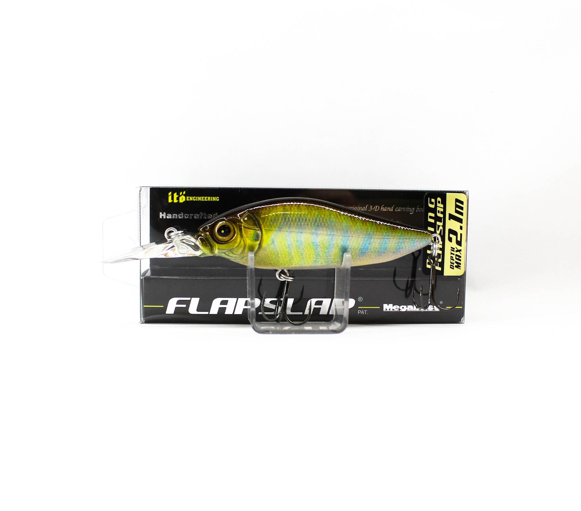 DIVING FLAP SLAP – модификация легендарного Flap Slap с лопатой способной заглубить приманку на глубину до 2-х метров. С Megabass Diving Flap Slap справится даже начинающий рыбак, так как его характеристики позволяют применять различные стили проводки. Базовой анимацией будет равномерная проводка с короткими остановками, также воблер может себя неплохо показать при использовании рывковой анимации. Высокое тело DIVING FLAP SLAP с плоскими боками создаёт сильные колебания и блики, привлекая рыбу со значительного расстояния. Наибольшую результативность воблер покажет при ловле щуки и окуня на озерах и речных заливах. Данная приманка оснащена острыми и надежными тройниками.