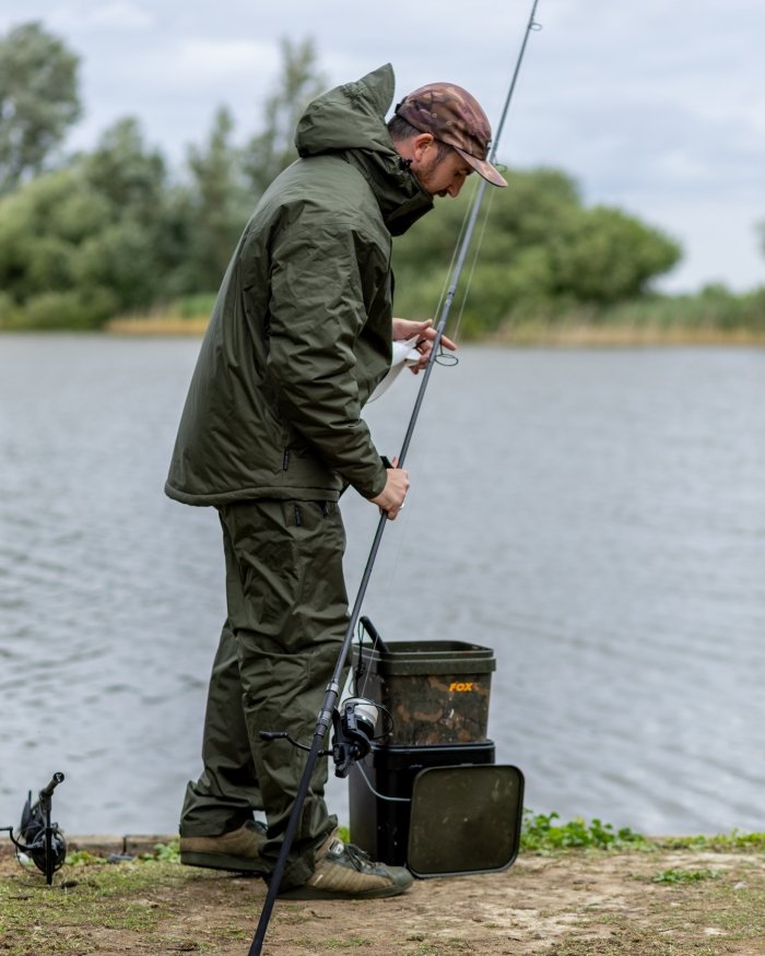 Зимовий костюм Fox Collection Winter Suit Green. Повний захисний комплект – включає куртку та штани, створені для повної ізоляції та водонепроникності тіла в холодних та вологих умовах. Всепогодний захист – ПВХ-покриття DWR з гідростатичним тиском 8000 мм та проклеєні шви забезпечують чудову водонепроникність. Тепловий комфорт – Кишені на блискавці з флісовою підкладкою та внутрішня нагрудна кишеня допомагають зберігати тепло, водночас маючи під рукою необхідні речі. Регульований капюшон – знімний та регульований капюшон для універсального захисту голови від вітру та дощу. Розумне регулювання посадки – регульований поділ за допомогою еластичної стрічки, регульовані манжети та еластичний пояс із ремінцями забезпечують щільну та вітрозахисну посадку. Підвищена міцність колін – посилені панелі на колінах забезпечують додатковий захист і комфорт під час стояння на колінах або присідання. Водостійка передня застібка – подвійний зовнішній штормовий дефлектор захищає від вітру та вологи навколо зони блискавки. Дизайн, зручний для взуття – Регульовані ремінці на щиколотці з ластовицею дозволяють легко закріпити штани поверх громіздких зимових чобіт. Створено для тривалого використання – виготовлено з міцного 100% поліестеру для довговічності в складних умовах зовнішнього середовища. Розміри включно – доступні в розмірах від S до 4XL, щоб задовольнити потреби всіх рибалок.