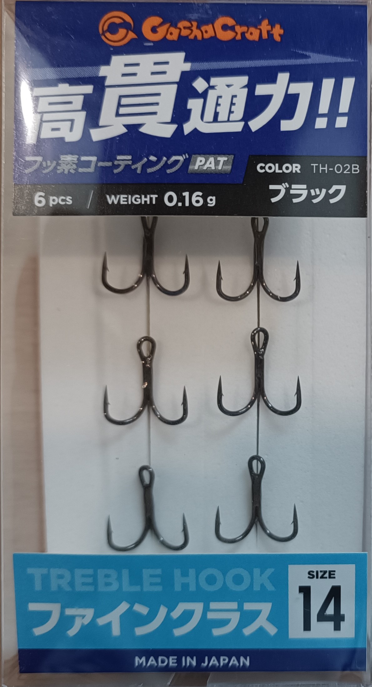 Рыболовный крючок GACHA CRAFT TREBLE HOOK FINE CLASS TH-02 #BLACK