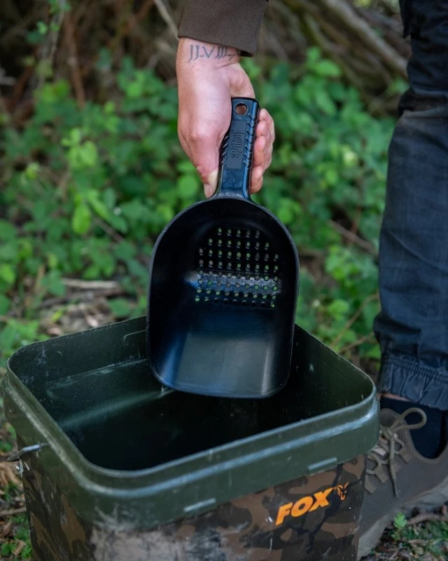 Совок Spomb Mega Scoop. Совок Spomb Mega Scoop має компактну цільну конструкцію, яка поміщається в будь-яке відро Fox/Spomb. Ідеально підходить для змішування приманки, підгодовування, завантаження Spomb та човників для наживки, а також чудово підходить для змішування брудних/липких сумішей для споду. Перфорований з отворами для стоку рідини. Особливості Великий чорний литий черпак для приманки Ідеально підходить для змішування приманки, розкладання приманки, завантаження спомбів та човників з приманкою Чудово підходить для змішування брудних/липких сумішей для сподів Отвори для відведення рідини Компактна цільна конструкція поміщається в будь-яке відро Fox/Spomb